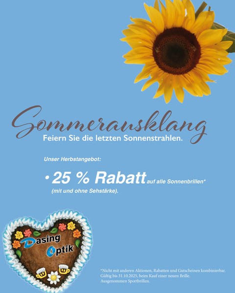 Unser Herbstangebot: 25 % Rabatt auf alle Sonnenbrillen* (mit und ohne Sehstärke).